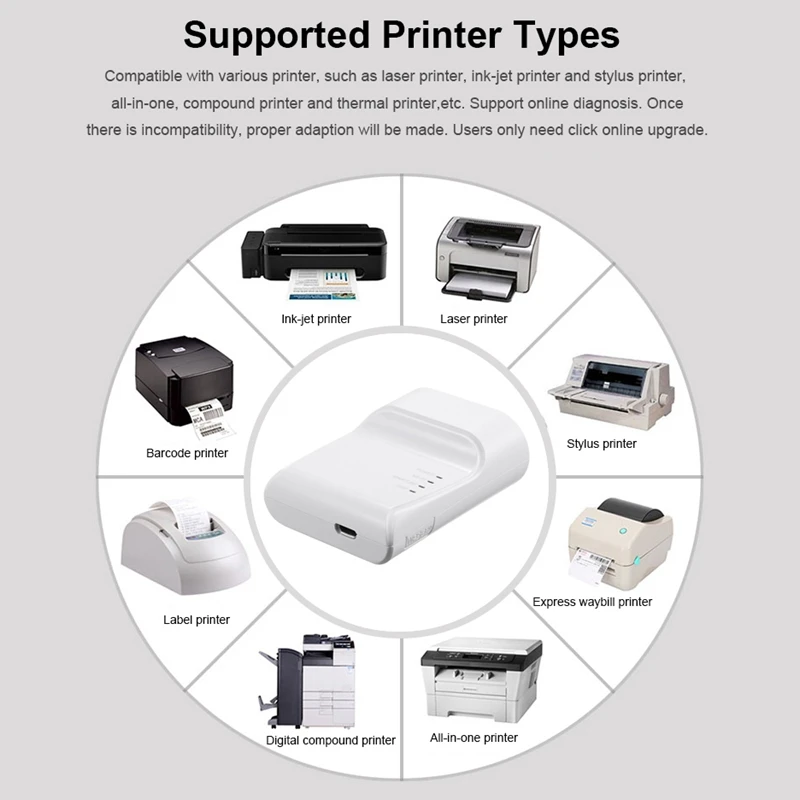 Wifi Ethernet Usb Printer Server Adapter Auto Queue Connect over Wifi&100M Lan for Usb Printer Lapt
